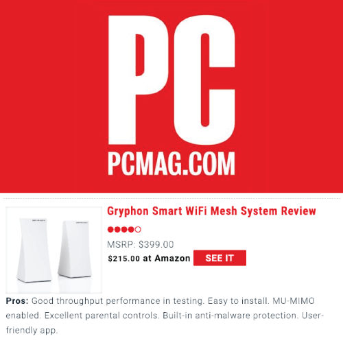 "...Overall, the Gryphon Router hits all the right notes when it comes to assessing Wi-Fi routers. It can help you take advantage of your internet speeds, can simultaneously handle several devices with high-bandwidth demands, and it will keep large homes dead zone-free. Though at $240 it's more expensive than most routers out there, I believe the performance and features justify the price."