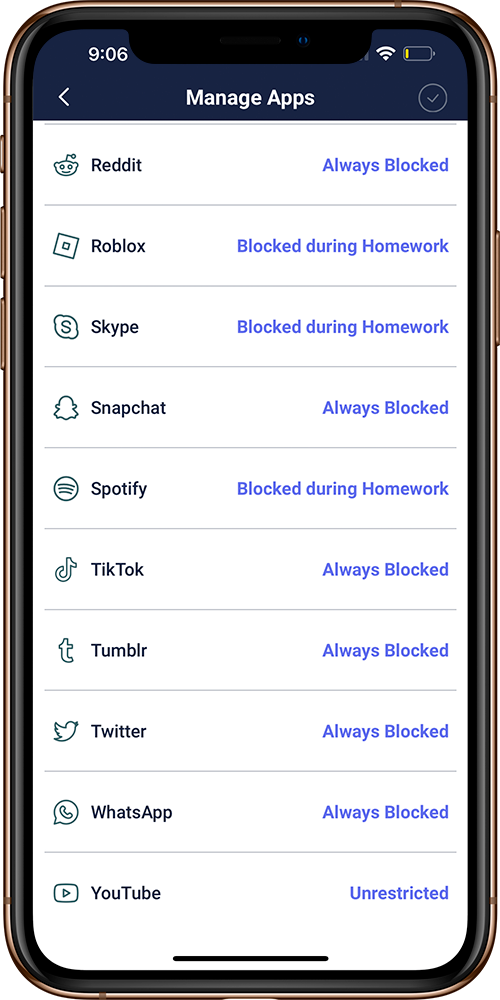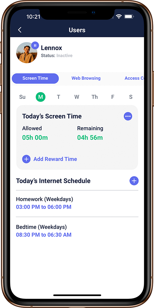 Limit access to distracting websites and apps during homework, bed time, or internet breaks.